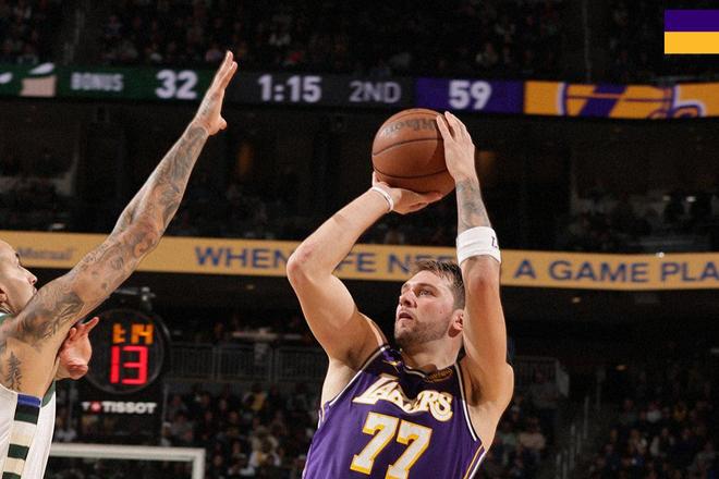 勒布朗·詹姆斯缺阵也无妨,湖人卢卡·东契奇对阵雄鹿展现统治力